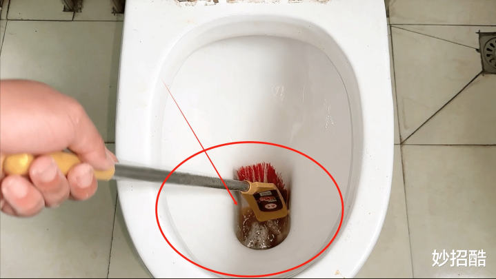 等时间到了之后,就拿出马桶刷,对着马桶内部的每个角落刷一遍。尤其是马桶出水口、跟下水口的凹槽处,一定要重点刷洗。