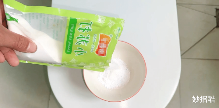 再加入少许洗衣粉,因为洗衣粉内部有活性酶,能快速分解污渍。洗衣粉还有一股独特的香味,可以掩盖马桶内的异味。